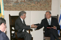 A harmonização dos sistemas judiciários brasileiro e uruguaio e o fortalecimento do Mercosul foram alguns dos temas tratados pelo presidente do Uruguai, Tabaré Vázquez, e o presidente do Supremo, ministro Nelson Jobim, na manhã desta sexta-feira (1º/4), no Salão Nobre da Corte. Esta é a primeira visita ao exterior feita por Vázquez desde que assumiu a presidência do Uruguai, em 1º de março.